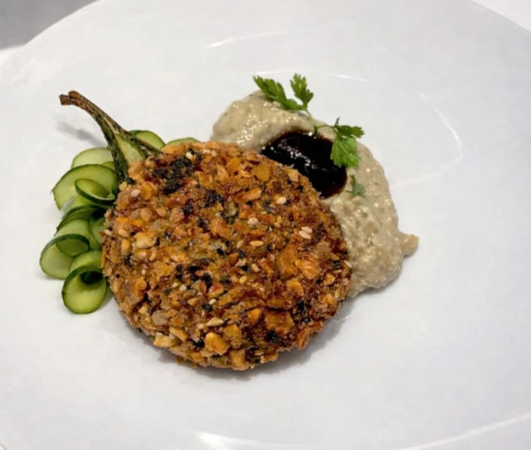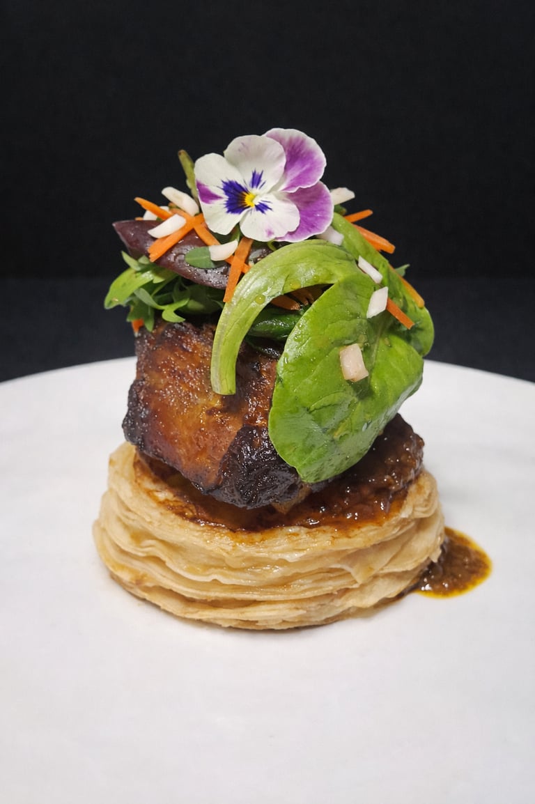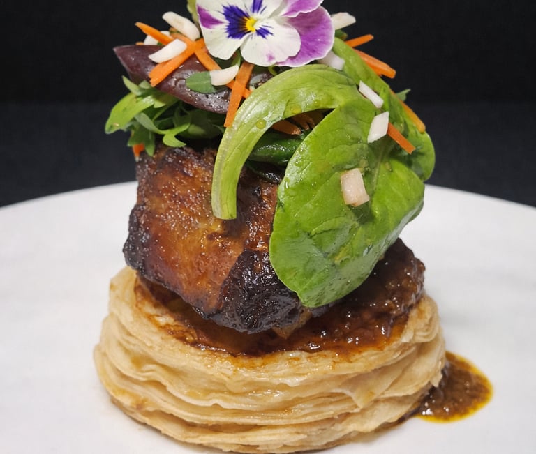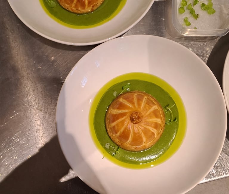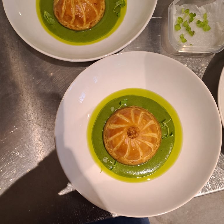 Spiced vegetables & potato pithivier with herb and lime bechamel
