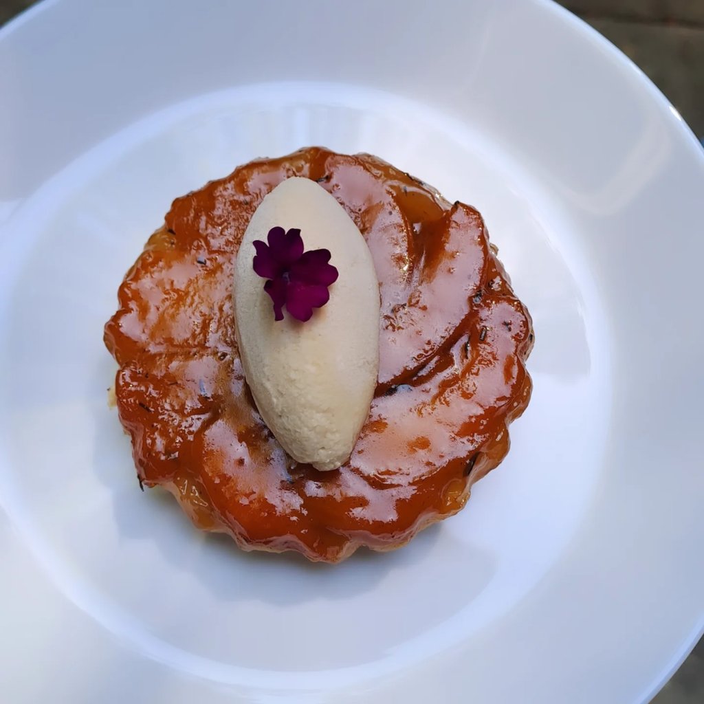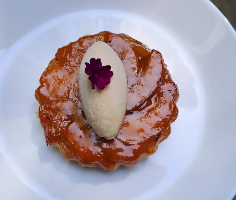 Apricot tarte tatin with vanilla ice cream