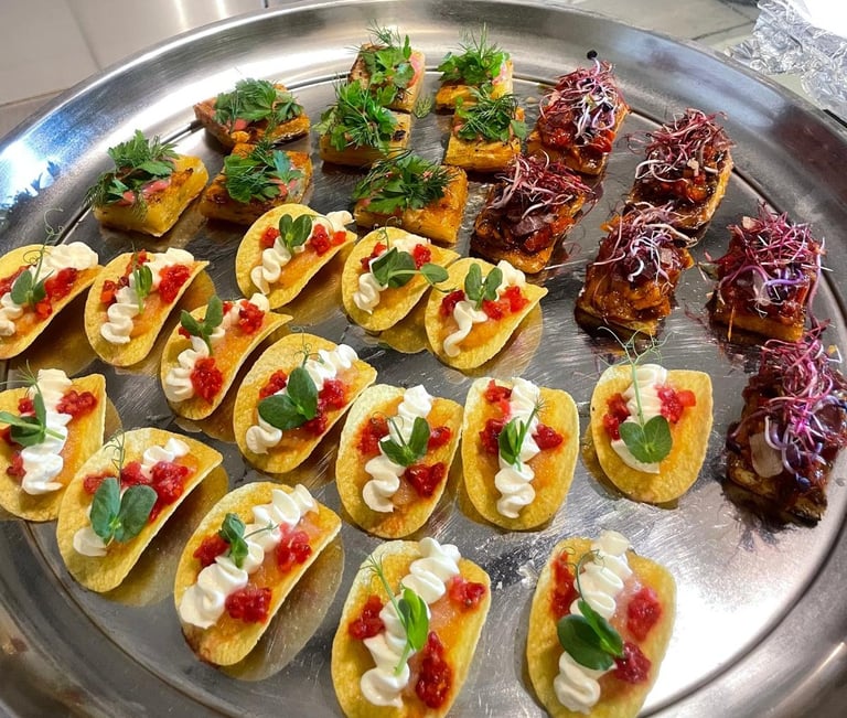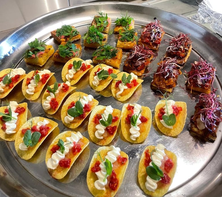 Salmon tartare, horseradish cream, raspberry & preserved lemon salsa