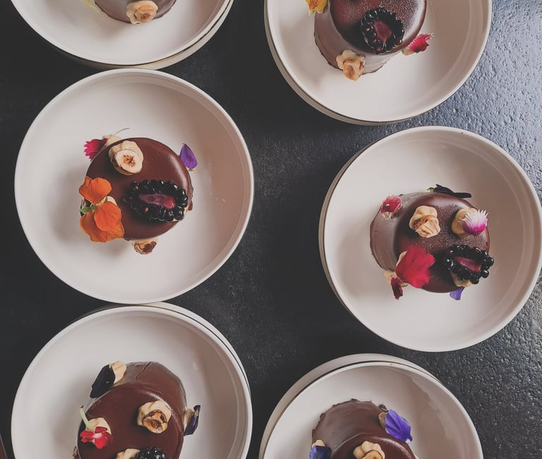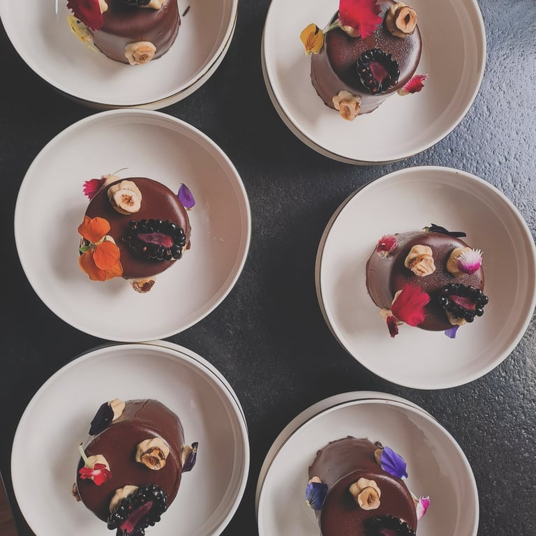 Entremet of pear, amaretto and dark chocolate