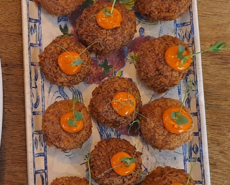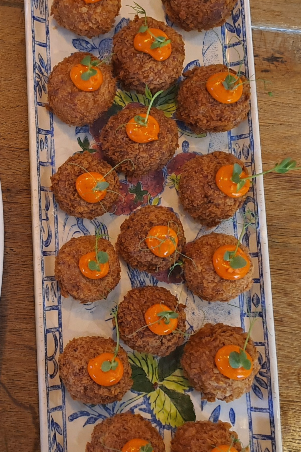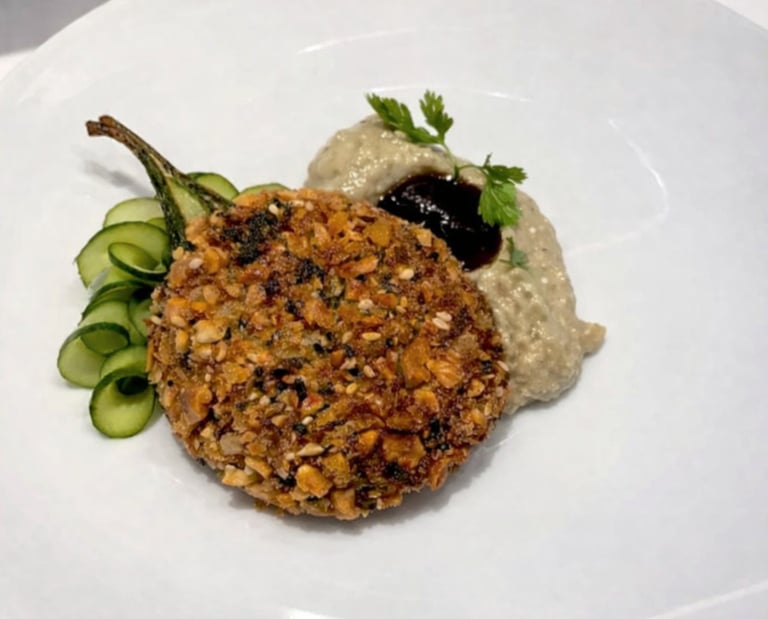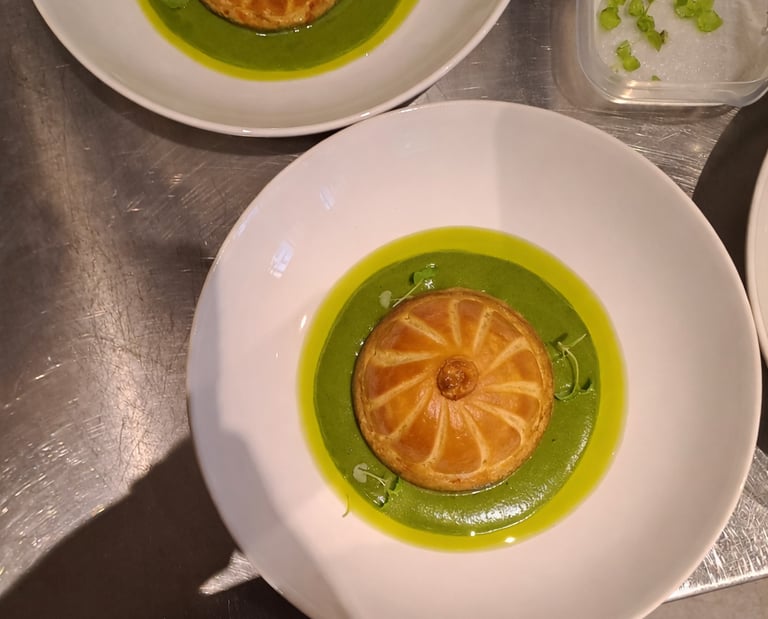 Pithivier de légumes épicés et pommes de terre, béchamel aux herbes et citron vert