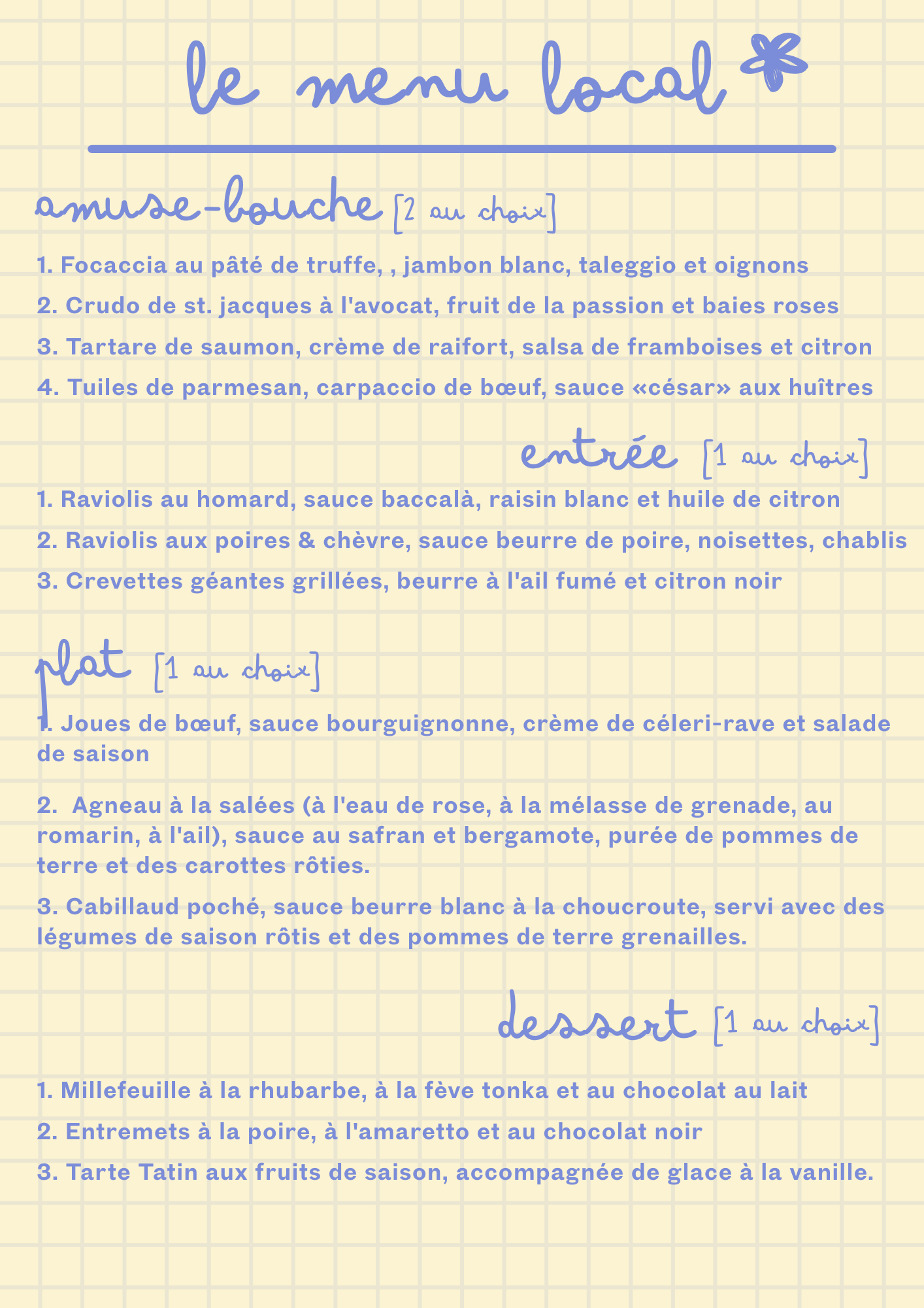 🦐 Des variantes sans lactose, sans gluten, végétarien, végétaliennes, pescétariennes, halal et casher de ce menu sont disponibles à la commande.